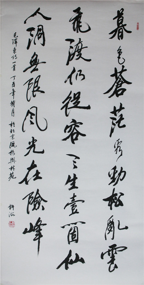 许 海,1957年6月19日出生于北京,原北京地质工程勘察院副院长、水文地质高级工程师、北京市高级职称评审中心评审委员、中国民族卫生协会健康饮水专业委员会委员、水利部建设项目水资源评估专家。现为中国榜书艺术研究会会员、北京华艺书画对外发展促进会会员、北京燕京书画社会员。中学时酷爱书画,曾得到邮票设计大师黄里先生油画技艺方面的指导; 1987—1989年在中国书画函授大学系统学习了国画技法等专业知识;八、九十年代得到阎锐敏书法家书法指导;2012年后系统学习了李力生书法家书体。 其书画作品曾多次参加过北京市范围内举办的大中型展览,有些作品被国内外爱好书画人士收藏。
